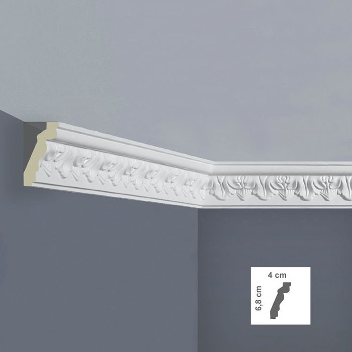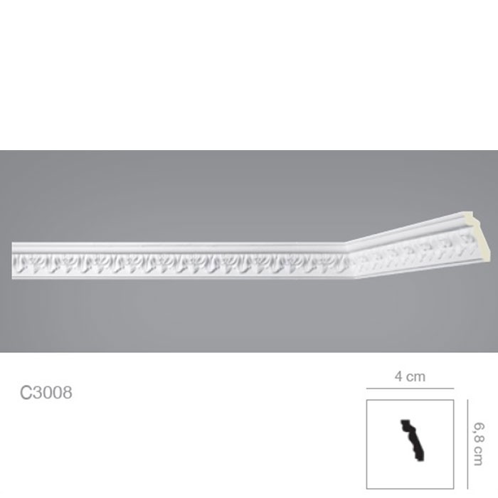 Cornisa tavan alba stil clasic vopsibila, din poliuretan dur ( sau bagheta tavan cum mai este denumita ) are un rol decorativ ce nu ar trebui sa lipseasca din amenajarile si proiectele Dvs, fiind utilizata la delimitarea suprafetelor precum si la mascarea anumitor imperfectiuni ale peretelui sau tavanului.