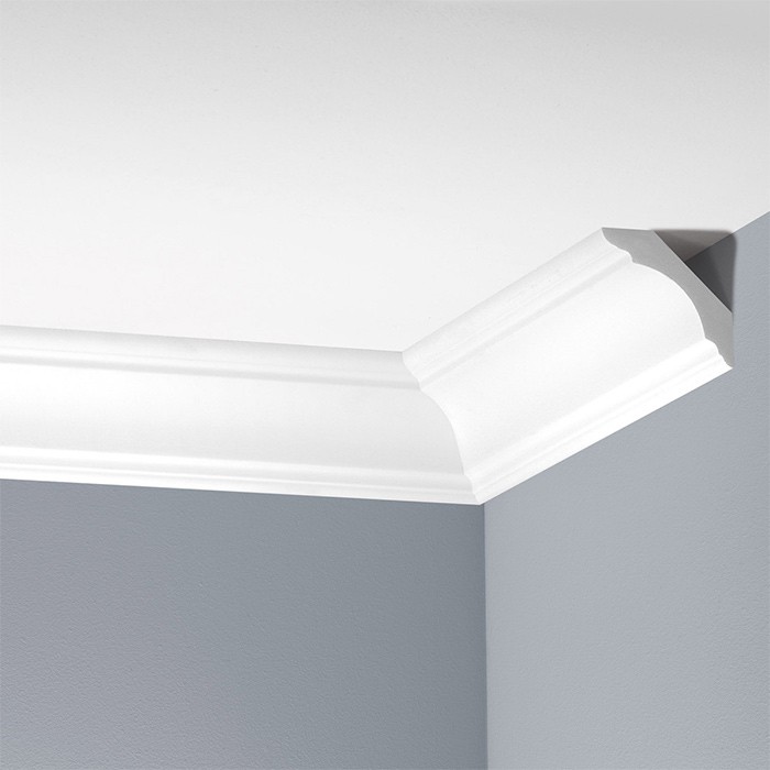 Cornisa tavan alba stil clasic vopsibila, din poliuretan dur ( sau bagheta tavan cum mai este denumita ) are un rol decorativ ce nu ar trebui sa lipseasca din amenajarile si proiectele Dvs, fiind utilizata la delimitarea suprafetelor precum si la mascarea anumitor imperfectiuni ale peretelui sau tavanului.