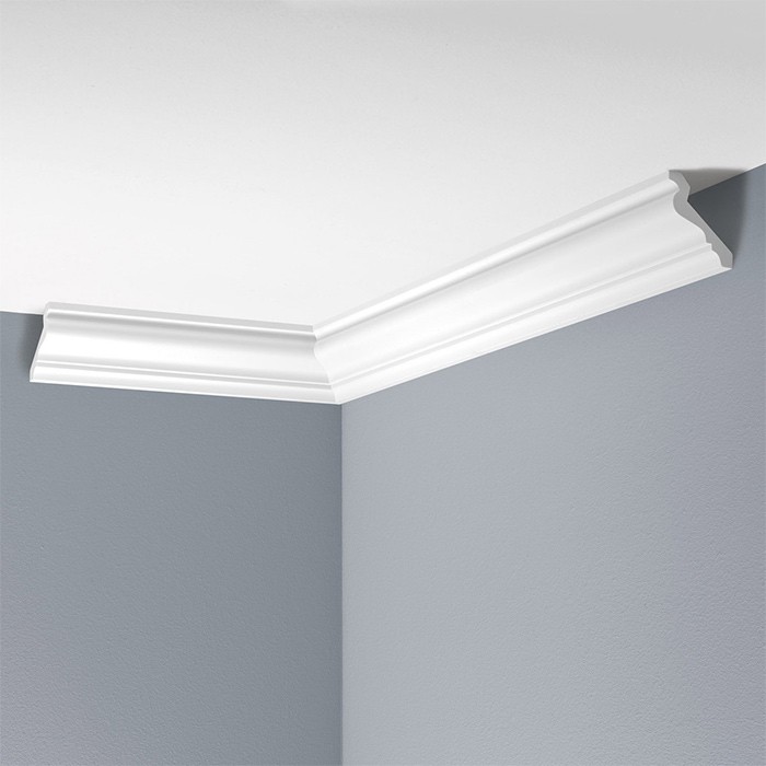 Cornisa tavan alba stil clasic vopsibila, din poliuretan dur ( sau bagheta tavan cum mai este denumita ) are un rol decorativ ce nu ar trebui sa lipseasca din amenajarile si proiectele Dvs, fiind utilizata la delimitarea suprafetelor precum si la mascarea anumitor imperfectiuni ale peretelui sau tavanului.