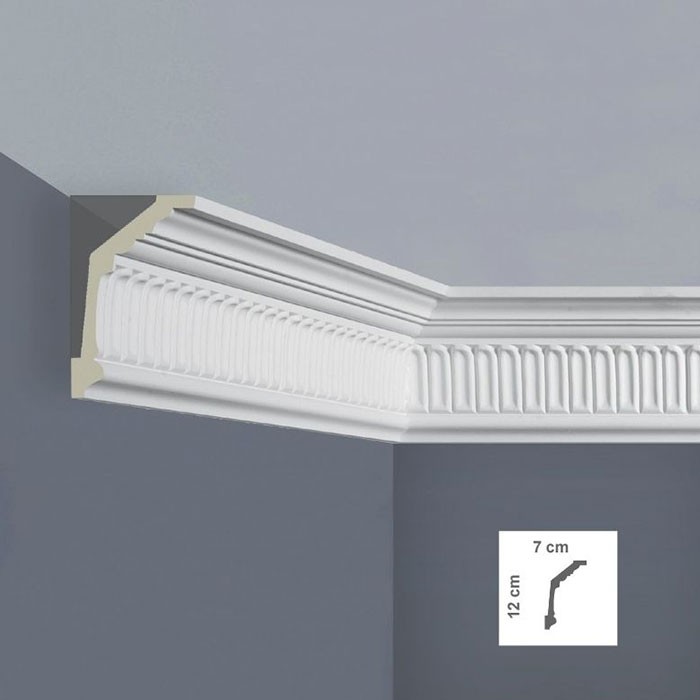 Cornisa tavan alba stil clasic vopsibila, din poliuretan dur ( sau bagheta tavan cum mai este denumita ) are un rol decorativ ce nu ar trebui sa lipseasca din amenajarile si proiectele Dvs, fiind utilizata la delimitarea suprafetelor precum si la mascarea anumitor imperfectiuni ale peretelui sau tavanului.