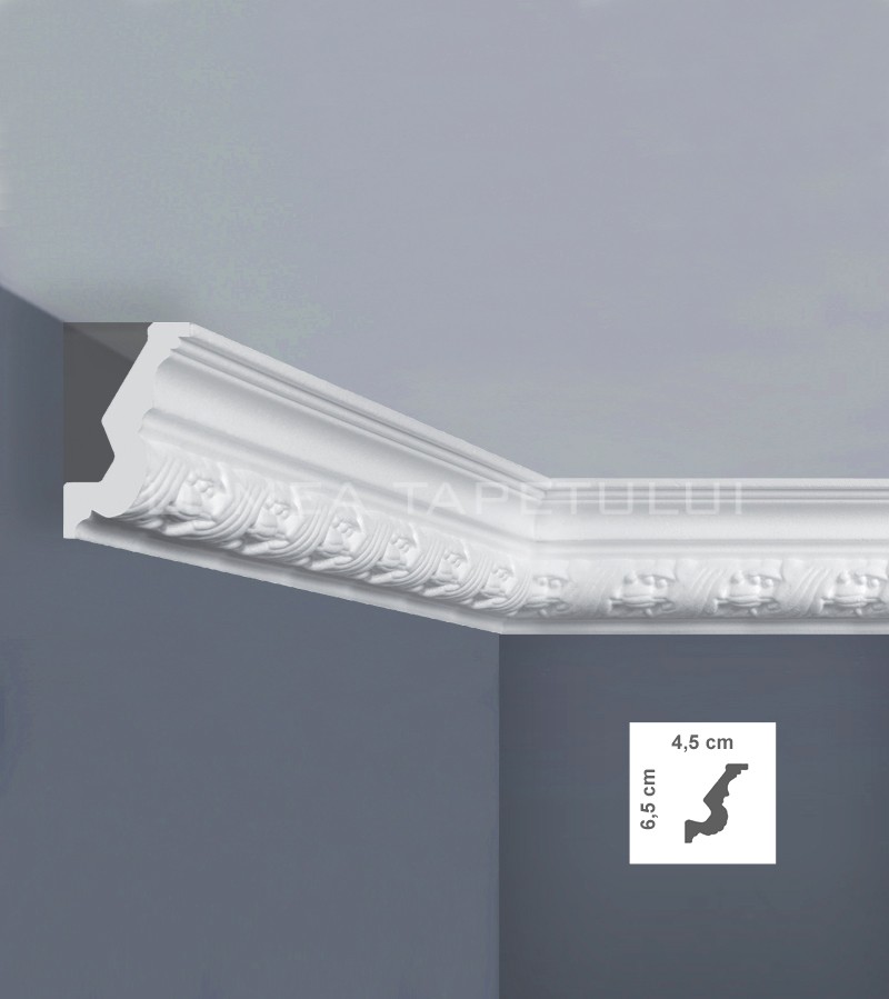 Cornisa tavan alba stil clasic vopsibila, din polimer expandat ce are o suprafata taratata precum ipsosul ( sau bagheta tavan cum mai este denumita ) are un rol decorativ ce nu ar trebui sa lipseasca din amenajarile si proiectele Dvs, fiind utilizata la delimitarea suprafetelor precum si la mascarea anumitor imperfectiuni ale peretelui sau tavanului.