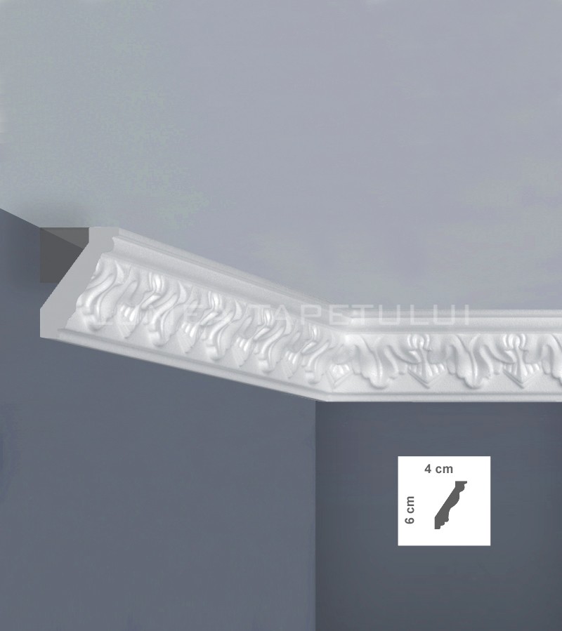 Cornisa tavan alba stil clasic vopsibila, din polimer expandat ce are o suprafata taratata precum ipsosul ( sau bagheta tavan cum mai este denumita ) are un rol decorativ ce nu ar trebui sa lipseasca din amenajarile si proiectele Dvs, fiind utilizata la delimitarea suprafetelor precum si la mascarea anumitor imperfectiuni ale peretelui sau tavanului.