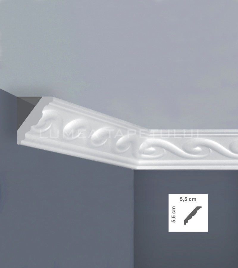 Cornisa tavan alba stil clasic vopsibila, din polimer expandat ce are o suprafata taratata precum ipsosul ( sau bagheta tavan cum mai este denumita ) are un rol decorativ ce nu ar trebui sa lipseasca din amenajarile si proiectele Dvs, fiind utilizata la delimitarea suprafetelor precum si la mascarea anumitor imperfectiuni ale peretelui sau tavanului.