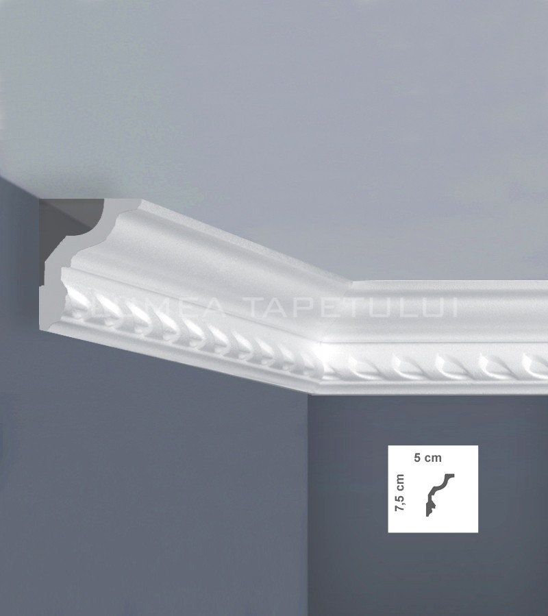 Cornisa tavan alba stil clasic vopsibila, din polimer expandat ce are o suprafata taratata precum ipsosul ( sau bagheta tavan cum mai este denumita ) are un rol decorativ ce nu ar trebui sa lipseasca din amenajarile si proiectele Dvs, fiind utilizata la delimitarea suprafetelor precum si la mascarea anumitor imperfectiuni ale peretelui sau tavanului.