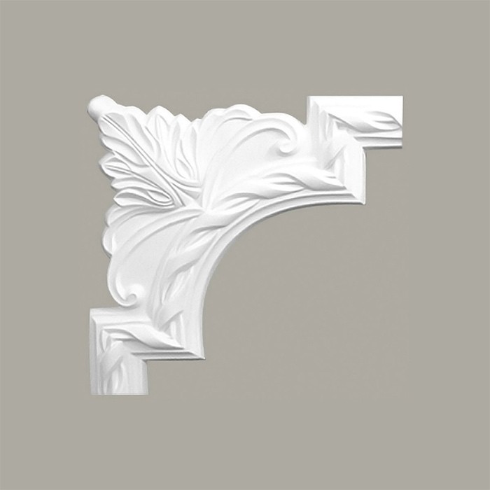 Ornament colt pentru profil brau decorativ alb din poliuretan dur, utilizat ca si ornament decorativ pentru profilul Cezar LNZ04 pentru obtinerea decoratiunilor de tip chenar pe pereti sau tavane.