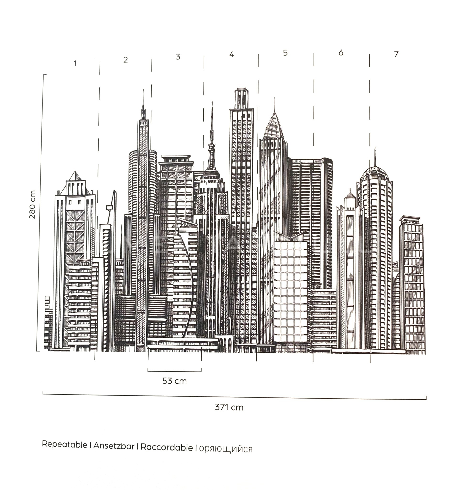 Un panel are dimensiunea de L = 3,71 m si H = 2,8 m, acoperind 10,388 mp, fiind alcătuit din 7 fâșii care se montează una lângă cealaltă pentru a forma imaginea întreagă ce o vedeți pe această pagină. Dacă doriți să acoperiți o suprafață cu lungimea mai mare de 3,71 m, este necesar să comandați mai multe paneluri, astfel încât să ajungeți la necesarul dvs. (surplusul se va taia în momentul montării).