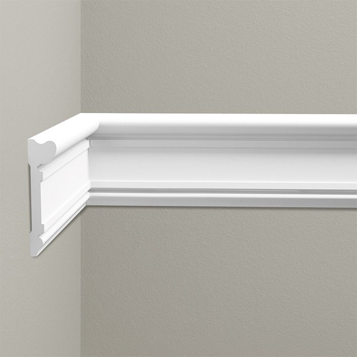 Profil brau decorativ Cezar alb din material dur polistructurat, utilizat la delimitare sau separare intre 2 suprafete sau la realizarea de ancadramente de tip chenar pe pereti sau tavane.