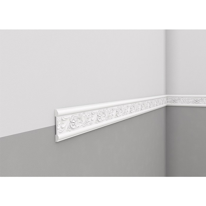 Profil brau decorativ Mardom alb din poliuretan dur, utilizat la delimitare sau separare intre 2 suprafete sau la realizarea de ancadramente de tip chenar pe pereti sau tavane.