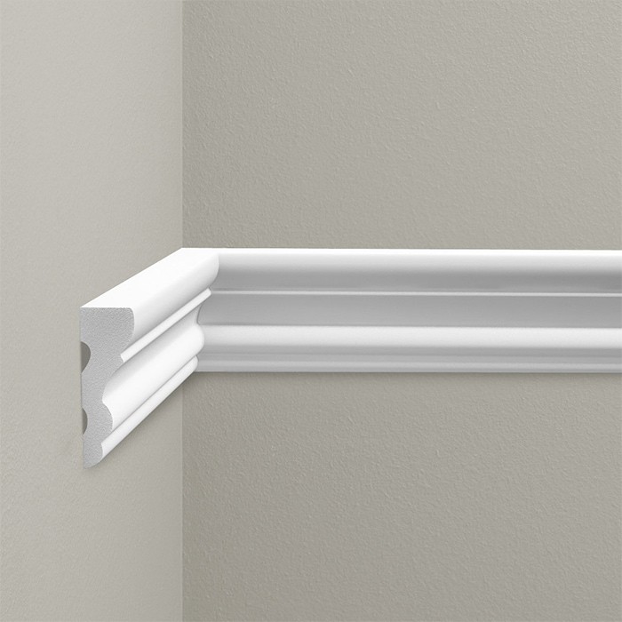 Profil brau decorativ Cezar alb din material dur poliuretan, utilizat la delimitare sau separare intre 2 suprafete sau la realizarea de ancadramente de tip chenar pe pereti sau tavane.