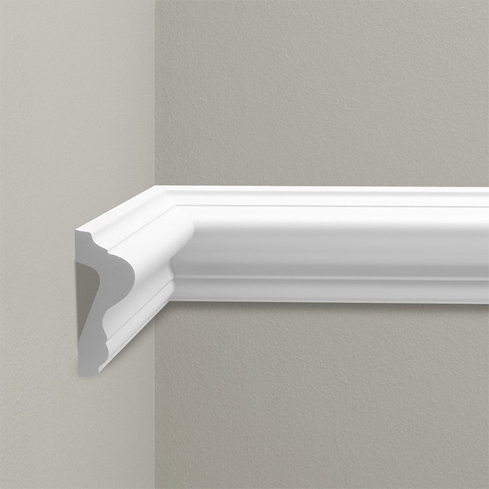 Profil brau decorativ Cezar alb din material dur poliuretan, utilizat la delimitare sau separare intre 2 suprafete sau la realizarea de ancadramente de tip chenar pe pereti sau tavane.