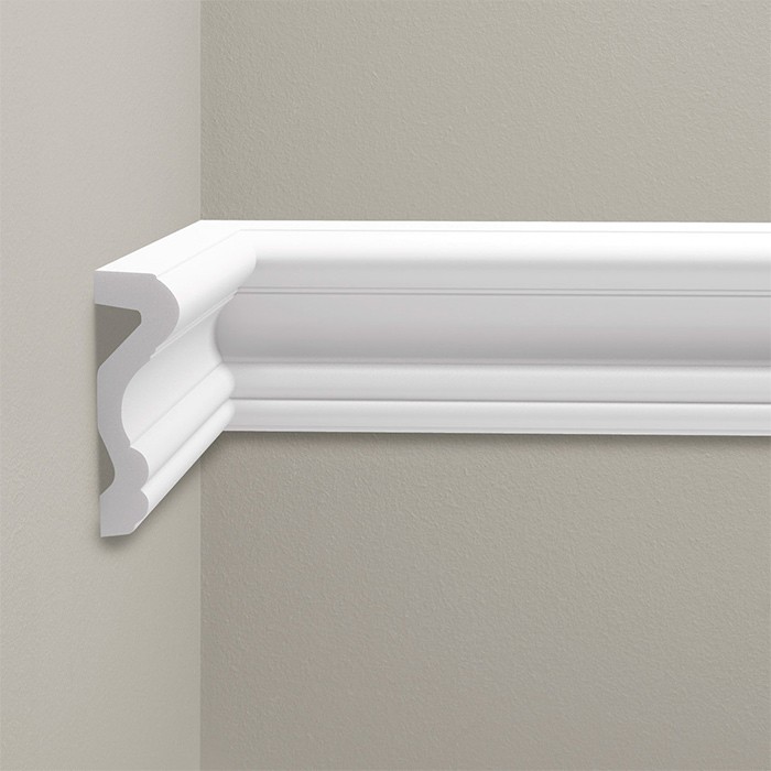 Profil brau decorativ Cezar alb din material dur poliuretan, utilizat la delimitare sau separare intre 2 suprafete sau la realizarea de ancadramente de tip chenar pe pereti sau tavane.