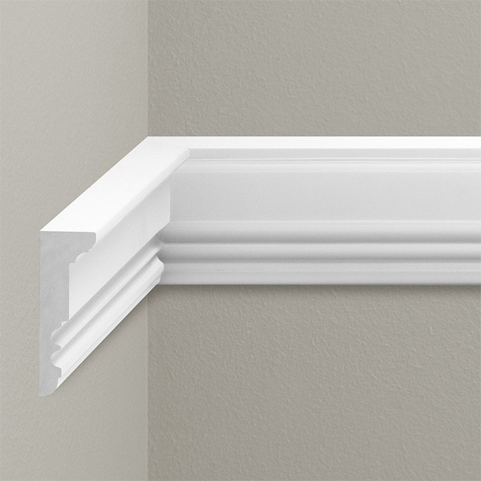 Profil brau decorativ Cezar alb din material dur poliuretan, utilizat la delimitare sau separare intre 2 suprafete sau la realizarea de ancadramente de tip chenar pe pereti sau tavane.
