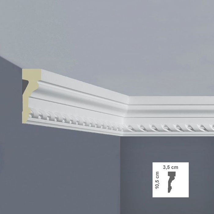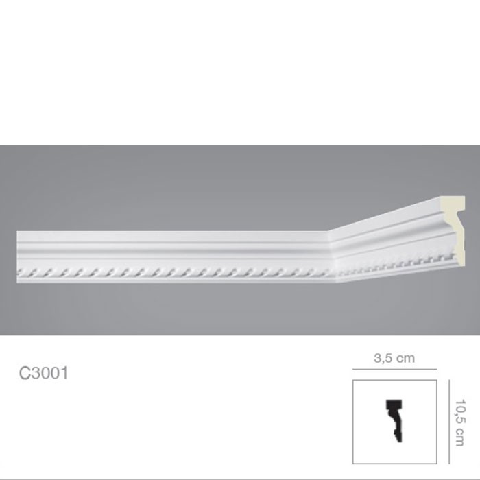 Profil decorativ tip brau poliuretan dur alb 3.5 x 10.5 x 200 cm Bovelacci Classicstyl C3001