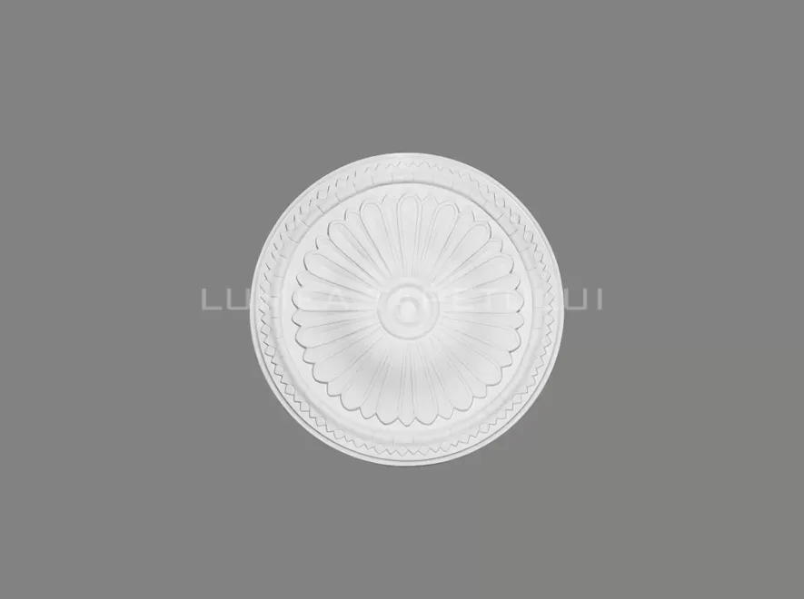 Rozeta pentru tavan alb stil clasic vopsibil, din poliuretan dur ; are un rol decorativ ce nu ar trebui sa lipseasca din amenajarile si proiectele Dvs, fiind utilizata si la mascarea anumitor imperfectiuni ale peretelui (poate fi montata si pe perete).