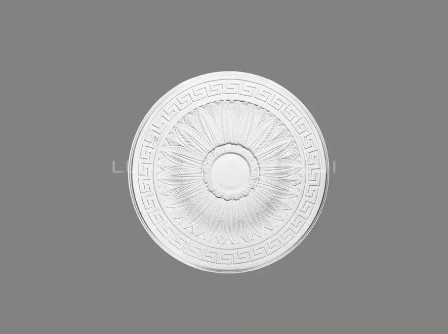 Rozeta pentru tavan alb stil clasic vopsibil, din poliuretan dur ; are un rol decorativ ce nu ar trebui sa lipseasca din amenajarile si proiectele Dvs, fiind utilizata si la mascarea anumitor imperfectiuni ale peretelui (poate fi montata si pe perete).