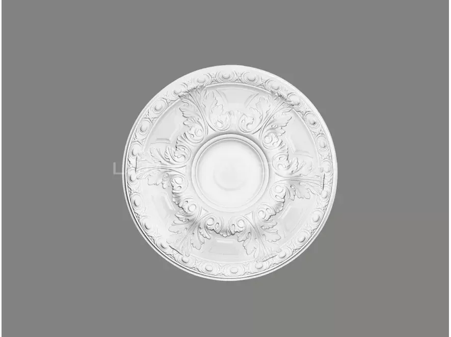 Rozeta pentru tavan alb stil clasic vopsibil, din poliuretan dur ; are un rol decorativ ce nu ar trebui sa lipseasca din amenajarile si proiectele Dvs, fiind utilizata si la mascarea anumitor imperfectiuni ale peretelui (poate fi montata si pe perete).