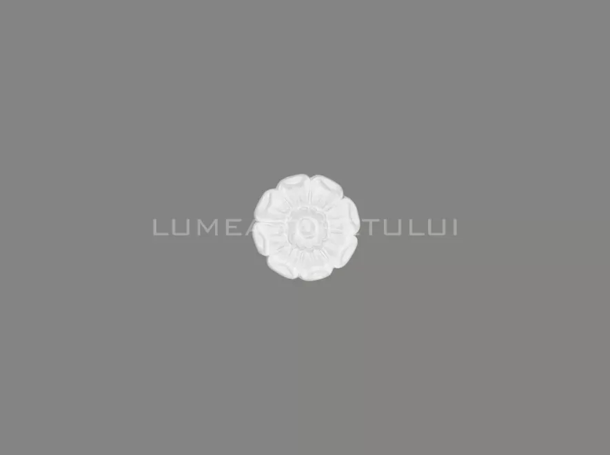 Rozeta pentru tavan alb stil clasic vopsibil, din poliuretan dur ; are un rol decorativ ce nu ar trebui sa lipseasca din amenajarile si proiectele Dvs, fiind utilizata si la mascarea anumitor imperfectiuni ale peretelui (poate fi montata si pe perete).