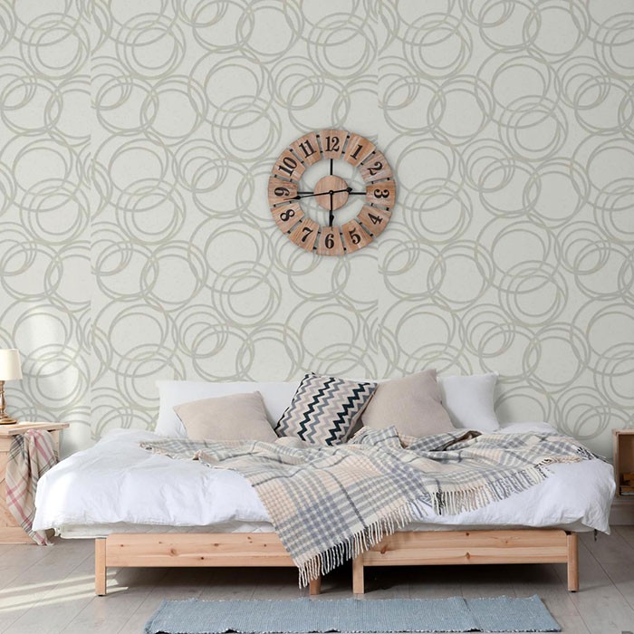 Tapet decorativ vinil super lavabil pe suport vlies ( se aplica adeziv doar pe perete ) lat de 1.06 m si lung de 15.6 m. Model de tapet dormitor, model tapet cercuri gri pe fond alb. Acesta este un tapet modern , ce poate fi utilizat ca tapet dormitor , tapet living , tapet baie sau tapet pentru bucatarie .