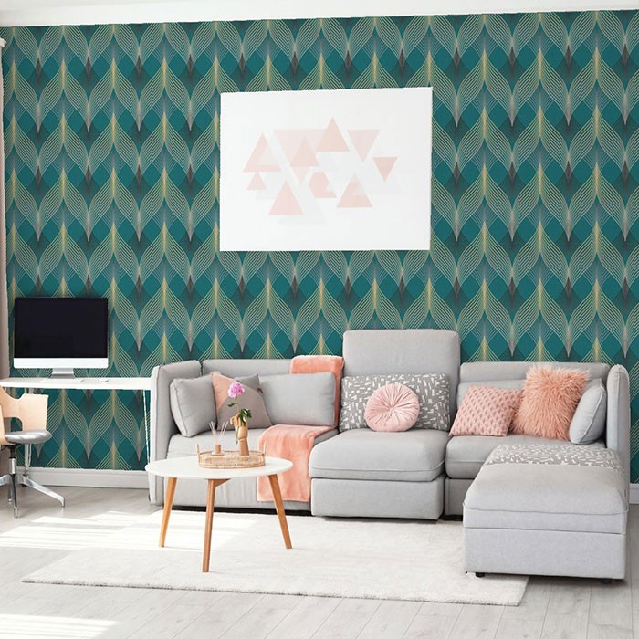 Tapet decorativ vinil super lavabil pe suport vlies ( se aplica adeziv doar pe perete ) lat de 1.06 m si lung de 15.6 m. Model de tapet dormitor, model cu forme spiralate in nuante de gri si bej pe fond verde. Acesta este un tapet modern , ce poate fi utilizat ca tapet dormitor , tapet living , tapet baie sau tapet pentru bucatarie.