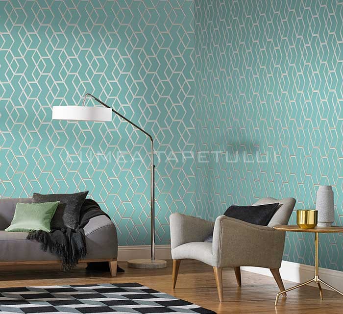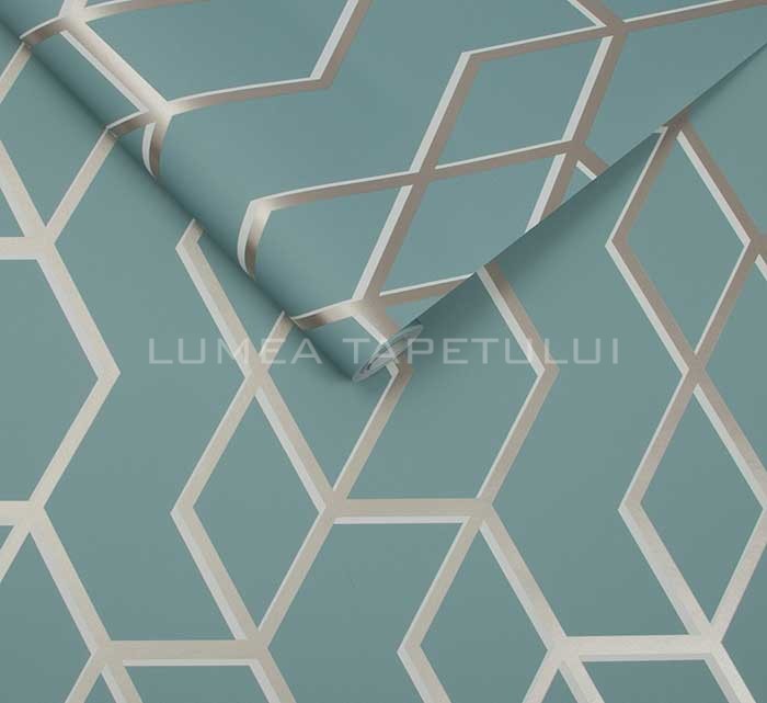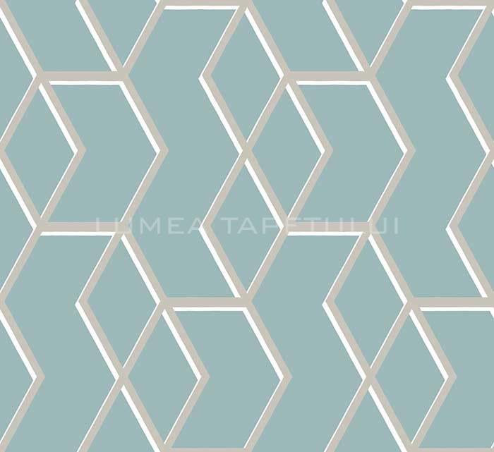 - Tapet pentru hotel , tapet pentru restaurant , tapet pentru cafenea , tapet pentru birou , tapet pentru living , tapet pentru baie , tapet pentru hol ,Tapet 3D living model geometric culoare albastru – gri metalizat Formation 104732