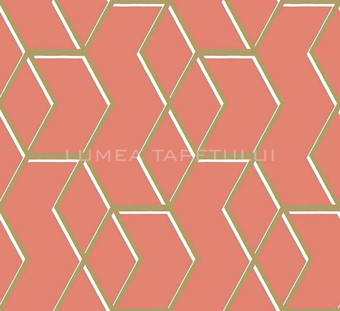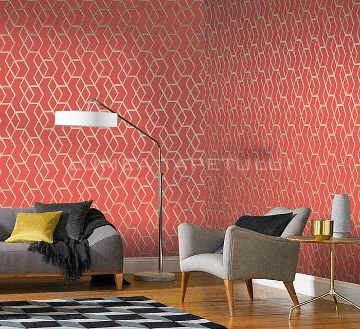 • Tapet pentru hotel , tapet pentru restaurant , tapet pentru cafenea , tapet pentru birou , tapet pentru living , tapet pentru baie , tapet pentru hol ,Tapet 3D living model geometric culoare rosu mat – auriu Formation 104736