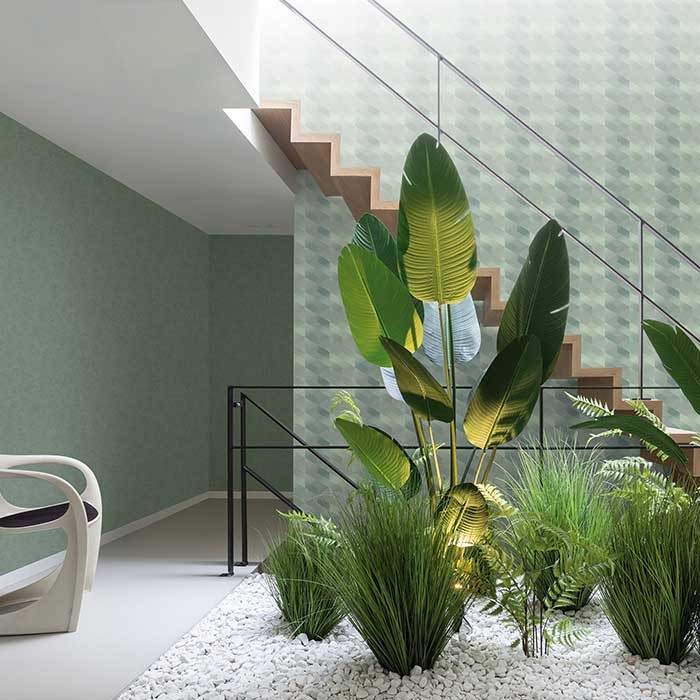 Tapet decorativ vinil super lavabil pe suport vlies ( se aplica adeziv doar pe perete ) lat de 53 cm si lung de 10 m. Model de tapet living, model tapet 3D geometric culoare verde. Acesta este un tapet modern , ce poate fi utilizat ca tapet living, tapet dormitor, tapet baie sau tapet pentru bucatarie .