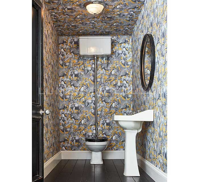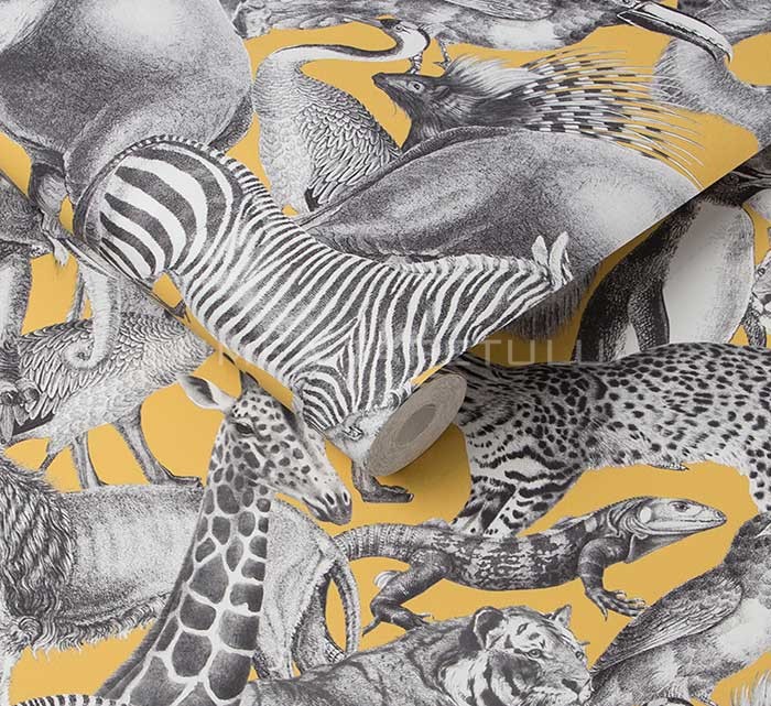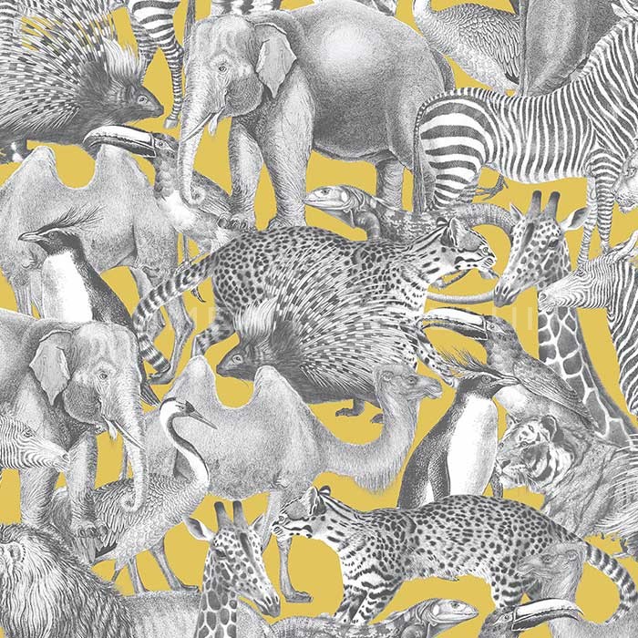 - Tapet pentru hotel , tapet pentru restaurant , tapet pentru cafenea , tapet pentru birou , tapet pentru living , tapet pentru baie , tapet pentru hol ,Tapet baie model cu animale galben – gri Reverie 105476.