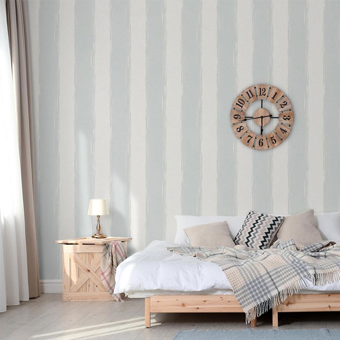 Tapet decorativ vinil super lavabil pe suport vlies ( se aplica adeziv doar pe perete ) lat de 1.06 m si lung de 15.6 m. Model de tapet dormitor, model cu dungi albastre pe fond gri deschis. Acesta este un tapet modern , ce poate fi utilizat ca tapet dormitor , tapet living , tapet baie sau tapet pentru bucatarie .