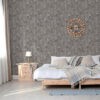 Tapet decorativ vinil super lavabil pe suport vlies ( se aplica adeziv doar pe perete ) lat de 1.06 m si lung de 15.6 m. Model de tapet dormitor, model floral oriental maro inchis pe fond gri. Acesta este un tapet modern , ce poate fi utilizat ca tapet dormitor , tapet living , tapet baie sau tapet pentru bucatarie .