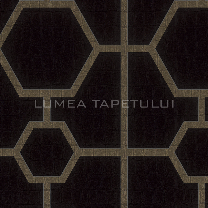 Tapet decorativ vinil super lavabil pe suport vlies ( se aplica adeziv doar pe perete ) lat de 106 cm si lung de 10 m. Model de tapet dormitor, model tapet figuri geometrice Philipp Plein. Acesta este un tapet modern , ce poate fi utilizat ca tapet dormitor , tapet living , tapet baie sau tapet pentru bucatarie .