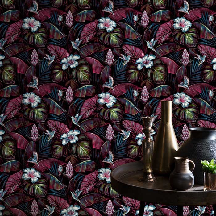Tapet model cu frunze culoare multicolor  Decoprint Perla NHW-1001 ✓ tapet modern ✓ tapet dormitor ✓ tapet living ✓ tapet lavabil ✓ tapet bucatarie ✓ tapet Cluj ✓ Discount pentru cantitati > 12 role ✓ tapet nontoxic ✓ tapet perete ✓ tapet Decoprint ✓ Cumpara acum pe www.lumeatapetului.ro !