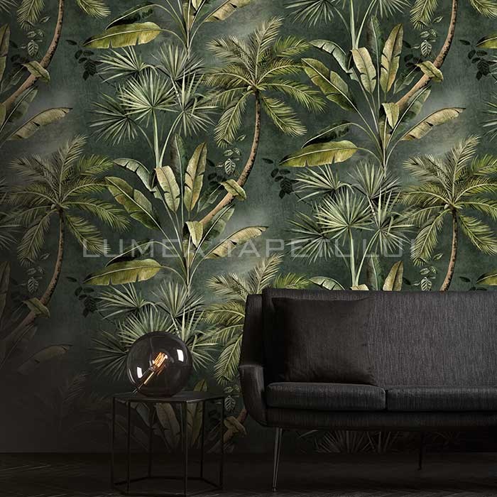 Tapet decorativ vinil super lavabil pe suport vlies ( se aplica adeziv doar pe perete ) lat de 53 cm si lung de 10 m. Model de tapet dormitor , model tapet cu jungla culoare multicolor .