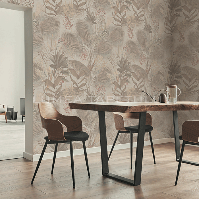 Tapet decorativ vinil super lavabil pe suport vlies ( se aplica adeziv doar pe perete ) lat de 1 m si lung de 10 m. Model de tapet dormitor, model tapet frunze Jannelli&Volpi.