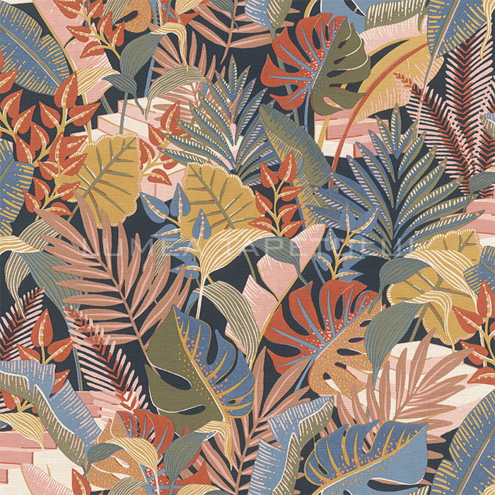 Tapet decorativ vinil super lavabil pe suport vlies ( se aplica adeziv doar pe perete ) lat de 53 cm si lung de 10 m. Model de tapet dormitor, model tapet frunze Rasch 687835.
