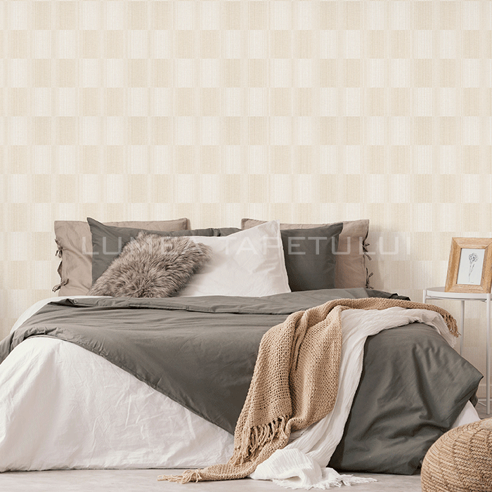 Tapet decorativ vinil super lavabil pe suport vlies ( se aplica adeziv doar pe perete ) lat de 53 cm si lung de 10 m. Model de tapet dormitor, model geometric Code Nature 10214-14.