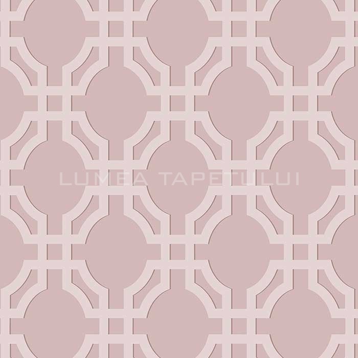 Tapet decorativ vinil super lavabil pe suport vlies ( se aplica adeziv doar pe perete ) lat de 53 cm si lung de 10 m. Model de tapet dormitor , model tapet geometric culoare roz .