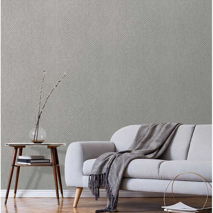 Tapet decorativ vinil super lavabil pe suport vlies ( se aplica adeziv doar pe perete ) lat de 53 cm si lung de 10 m. Model de tapet dormitor , model tapet imitatie piele de sarpe culoare gri. Acesta este un tapet modern , ce poate fi utilizat ca tapet living, tapet dormitor, tapet baie sau tapet pentru bucatarie .