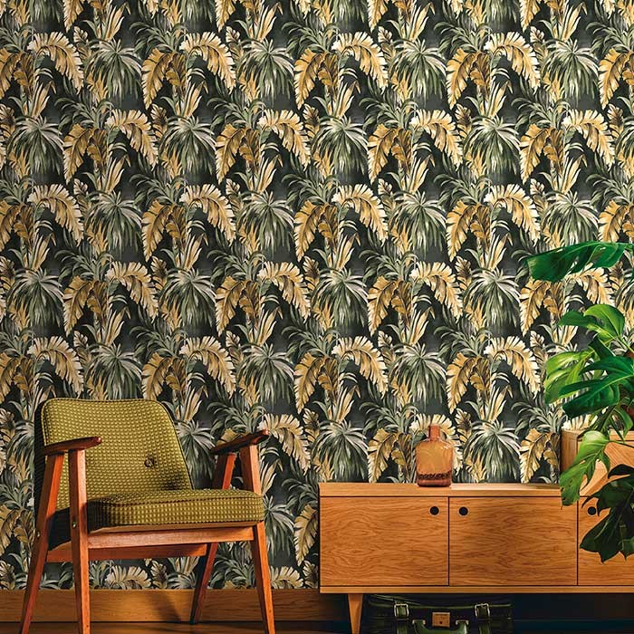Tapet decorativ vinil super lavabil pe suport vlies ( se aplica adeziv doar pe perete ) lat de 53 cm si lung de 10 m. Model de tapet dormitor , model tapet jungla culoare verde – galben . Acesta este un tapet modern , ce poate fi utilizat ca tapet living, tapet dormitor, tapet baie sau tapet pentru bucatarie .