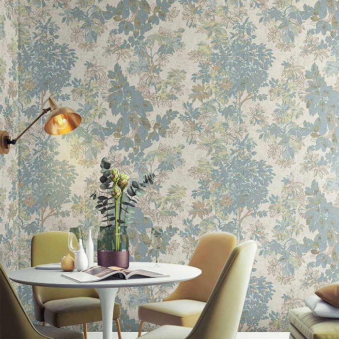 Tapet decorativ vinil super lavabil pe suport vlies ( se aplica adeziv doar pe perete ) lat de 1.06 m si lung de 15.6 m. Model de tapet dormitor, model tapet crengi si frunze albastre pe fond gri. Acesta este un tapet modern , ce poate fi utilizat ca tapet dormitor , tapet living , tapet baie sau tapet pentru bucatarie .