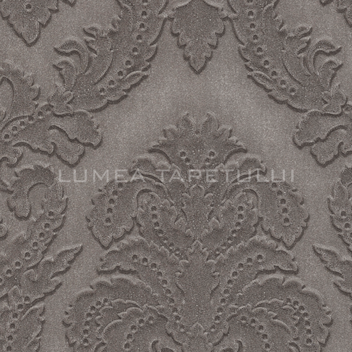 Tapet decorativ vinil super lavabil pe suport vlies ( se aplica adeziv doar pe perete ) lat de 106 cm si lung de 10 m. Model de tapet dormitor, model tapet ornamente florale Trussardi.  Acesta este un tapet clasic , ce poate fi utilizat ca tapet dormitor , tapet living , tapet baie sau tapet pentru bucatarie .