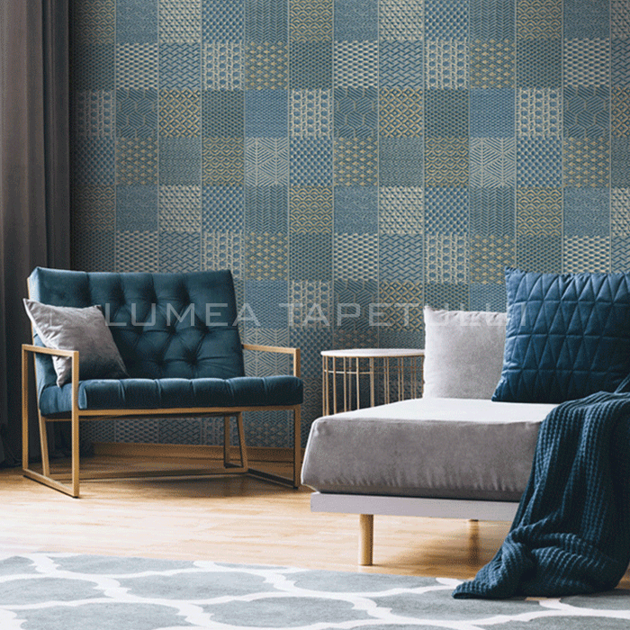 Tapet decorativ vinil super lavabil pe suport vlies ( se aplica adeziv doar pe perete ) lat de 1 m si lung de 10 m. Model de tapet dormitor, model tapet texturat geometric unicolor Jannelli&Volpi.