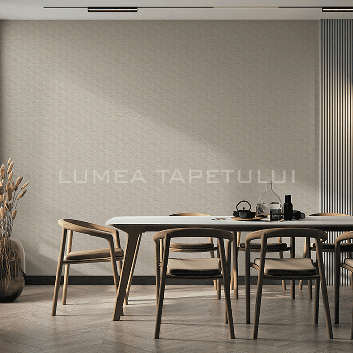 Tapet decorativ vinil super lavabil pe suport vlies ( se aplica adeziv doar pe perete ) lat de 1 m si lung de 10 m. Model de tapet dormitor, model tapet texturat geometric unicolor Jannelli&Volpi.