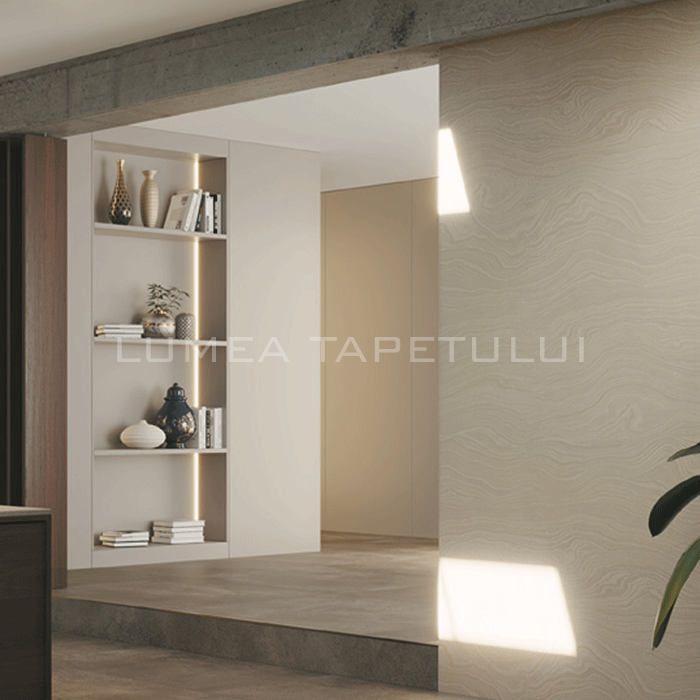 Tapet decorativ vinil super lavabil pe suport vlies ( se aplica adeziv doar pe perete ) lat de 70 cm si lung de 10 m. Model de tapet dormitor, model tapet model texturat monocrom Jannelli&Volpi.