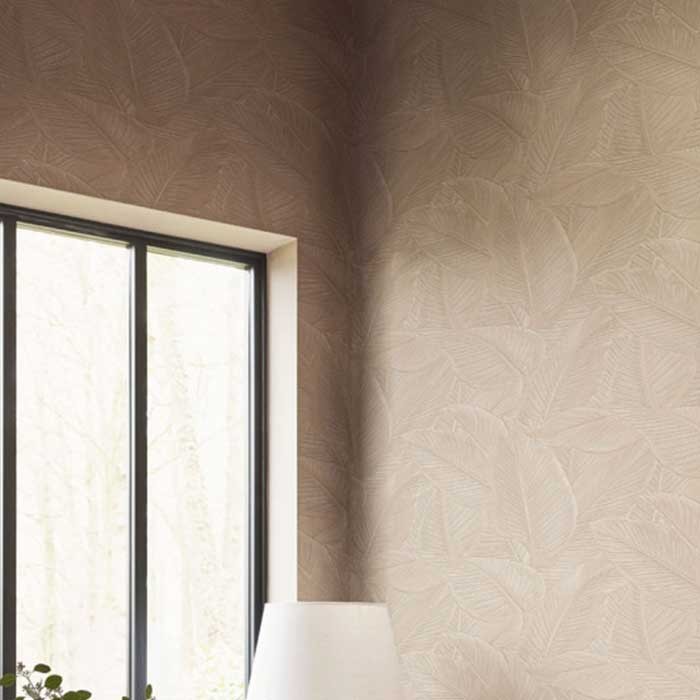 Tapet decorativ vinil super lavabil pe suport vlies ( se aplica adeziv doar pe perete ) lat de 53 cm si lung de 10 m. Model de tapet living , model tapet cu frunze culoare crem. Acesta este un tapet modern , ce poate fi utilizat ca tapet dormitor , tapet living , tapet baie sau tapet pentru bucatarie .