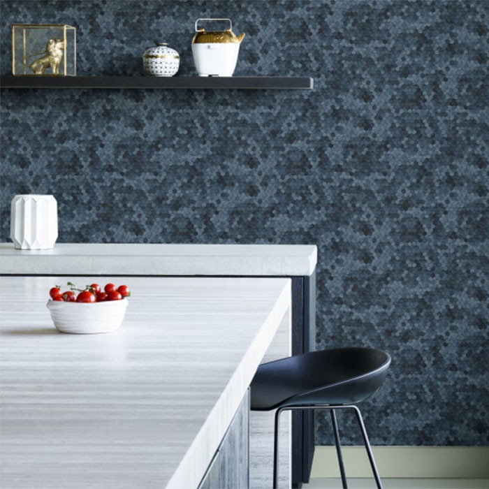 Tapet decorativ vinil super lavabil pe suport vlies ( se aplica adeziv doar pe perete ) lat de 53 cm si lung de 10 m. Model de tapet living, model tapet texturat model geometric albastru . Acesta este un tapet modern , ce poate fi utilizat ca tapet dormitor , tapet living , tapet baie sau tapet pentru bucatarie .