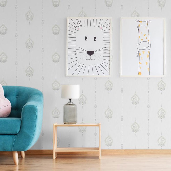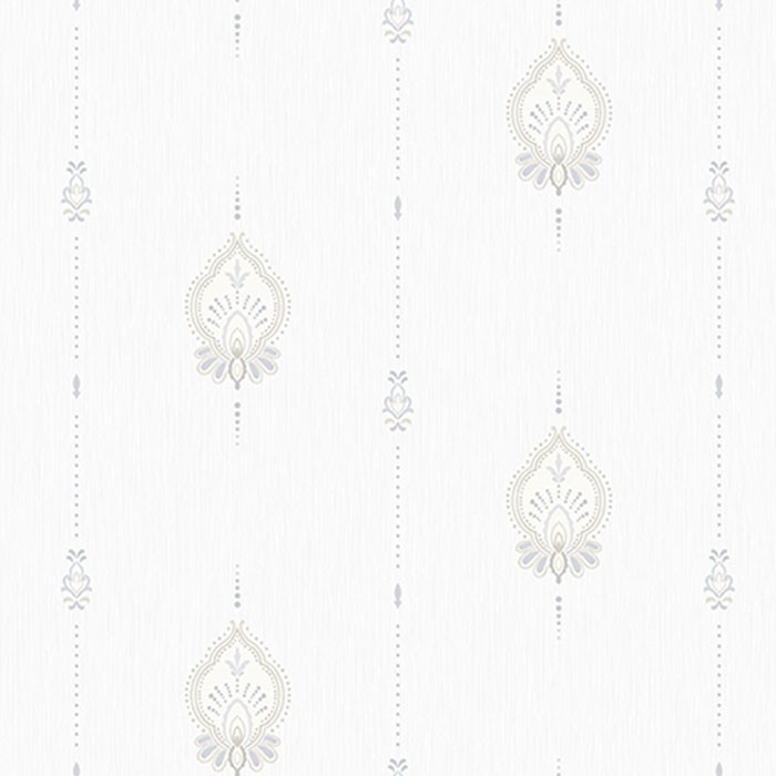Tapet decorativ vinil super lavabil pe suport vlies ( se aplica adeziv doar pe perete ) lat de 1.06 m si lung de 15.6 m. Model de tapet living, model tapet texturat model ornamente damasc gri pe fond alb. Acesta este un tapet modern , ce poate fi utilizat ca tapet dormitor , tapet living , tapet baie sau tapet pentru bucatarie .